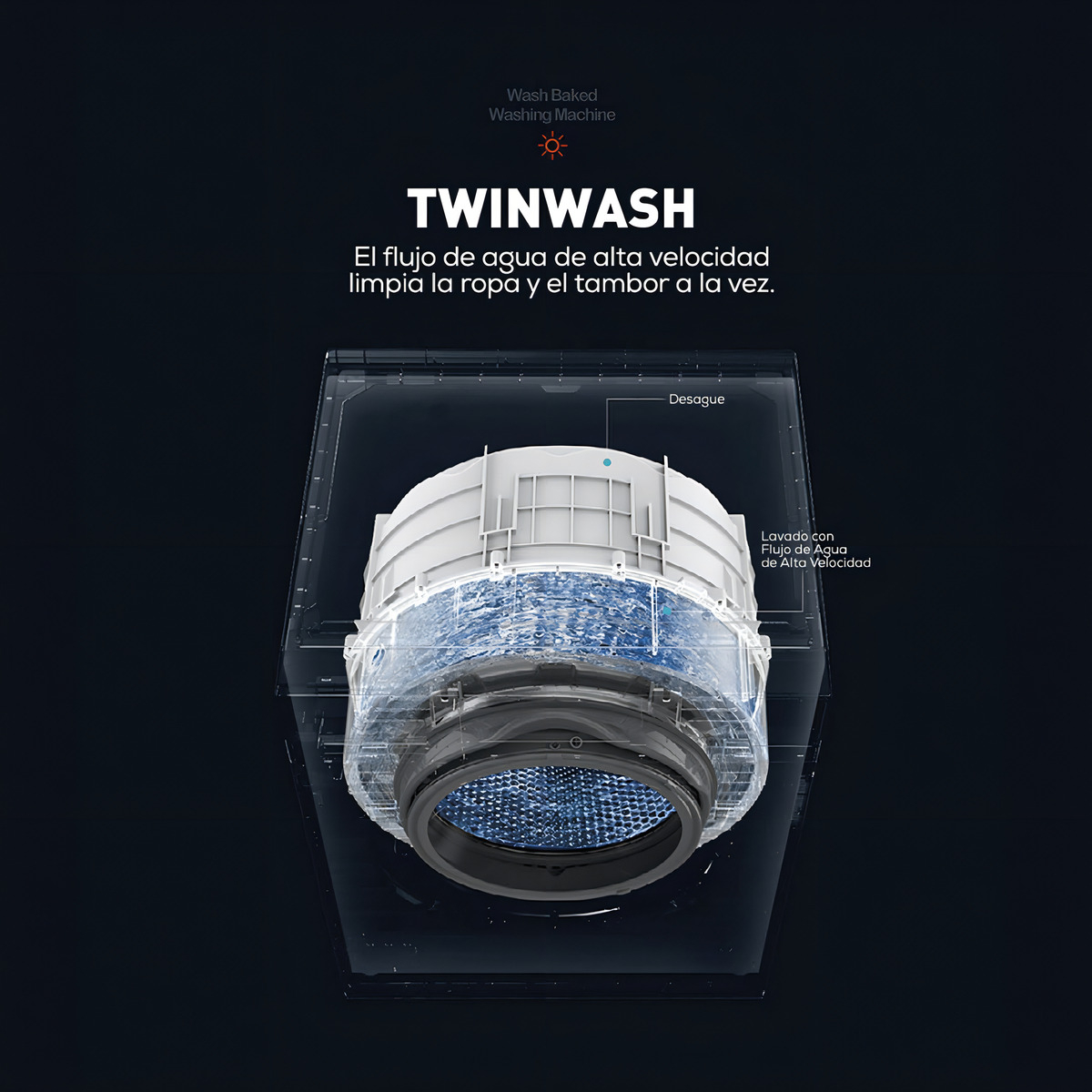 Reduce el ruido y las vibraciones, aún en velocidad máxima de centrifugado. A su vez, requiere un menor consumo de agua y electricidad.