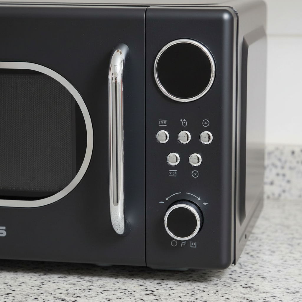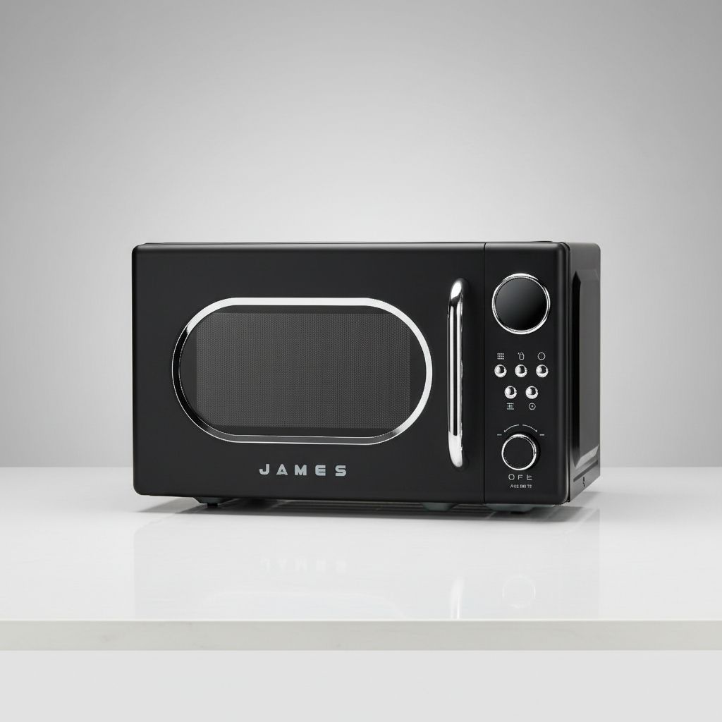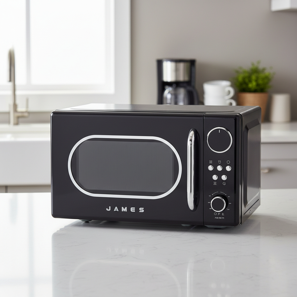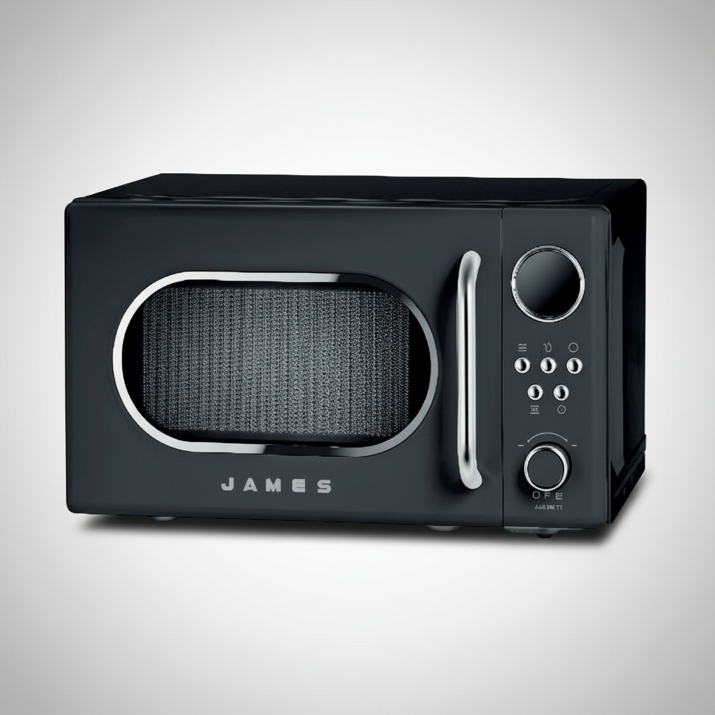 El Microondas Retro James J 20 Rn Negro es una opción ideal para quienes buscan un electrodoméstico funcional y con estilo. Con una capacidad de 20 L, este microondas ofrece 5 niveles de potencia y 8 programas preestablecidos, permitiendo una cocción versátil y adaptada a tus necesidades. Su programación analógica facilita su uso, mientras que el timer y el reloj integrados añaden comodidad a tu cocina. Además, cuenta con la función de descongelado por peso y tiempo, lo que asegura resultados óptimos en cada preparación. La seguridad también es una prioridad, gracias al bloqueo para niños. Con un diámetro de plato de 255 mm y dimensiones compactas de 330 x 360 x 260 mm, se adapta perfectamente a cualquier espacio sobre mesada, combinando funcionalidad y diseño en un atractivo color negro.