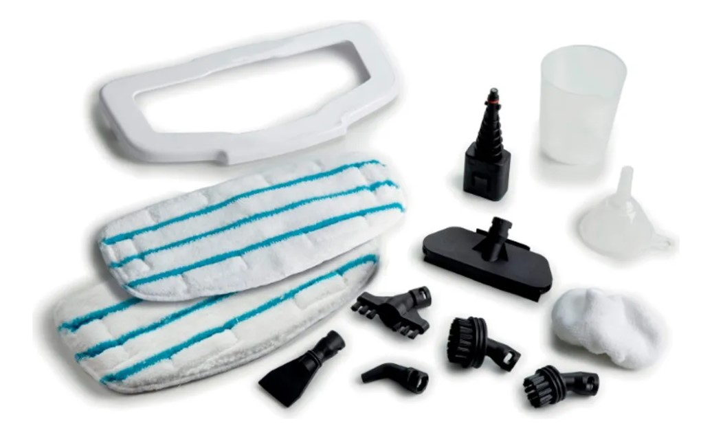 Escoba Limpiadora a Vapor Plegable, 10 funciones en 1. Cuerpo central desmontable para un uso manual práctico y cabezal inteligente para una limpieza fácil incluso debajo de los muebles. 1500 watts.