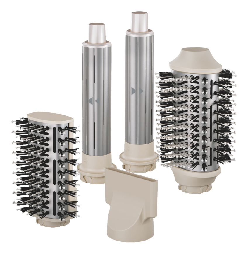 Accesorios: cepillo ovalado, medio cepillo, concentrador, curler giratorio automático (derecha e izquierda)