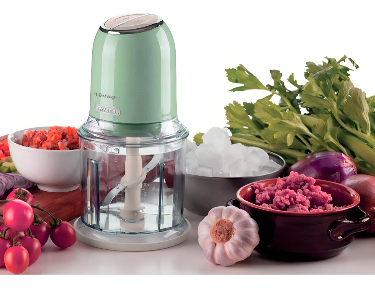 La línea Vintage de Ariete se enriquece con un producto esencial para tus recetas de cocina: una trituradora eléctrica con líneas retro y suaves tonos pastel, perfecta para aportar un toque de estilo y funcionalidad a tu cocina. Gracias a su potencia de 400 W y sus 4 cuchillas de acero inoxidable, la trituradora Vintage te permite cortar cualquier ingrediente para tus recetas: desde verduras hasta carne, queso, pan, frutos secos e incluso hielo. Las 2 velocidades, que se pueden controlar con los dos botones de la parte superior de la trituradora, permiten picar finamente los alimentos, mientras que las patas antideslizantes garantizan la seguridad y la máxima adherencia del producto a la superficie de trabajo.